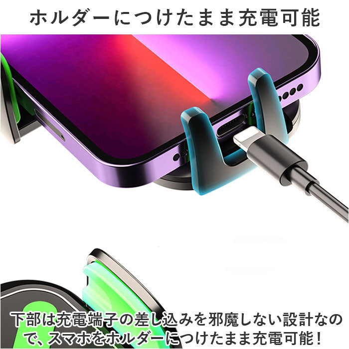 ・下部は充電端子の差し込みを邪魔しない設計なので、スマホをホルダーにつけたまま充電可能!
