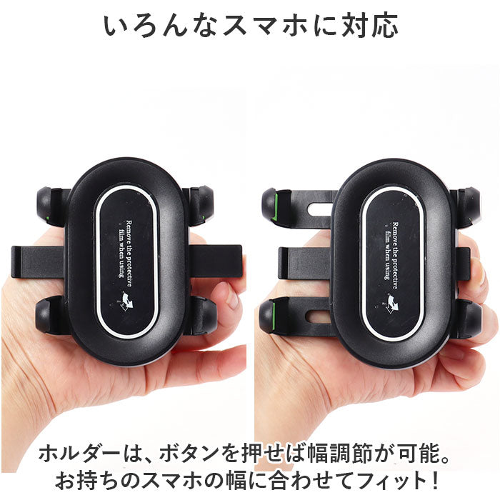 ・ホルダーは、ボタンを押せば幅調節が可能。お持ちのスマホの幅に合わせてフィット!
