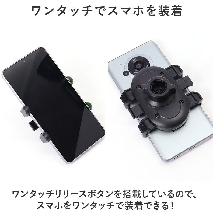 ・ワンタッチリリースボタンを搭載しているので、スマホをワンタッチで装着できる!