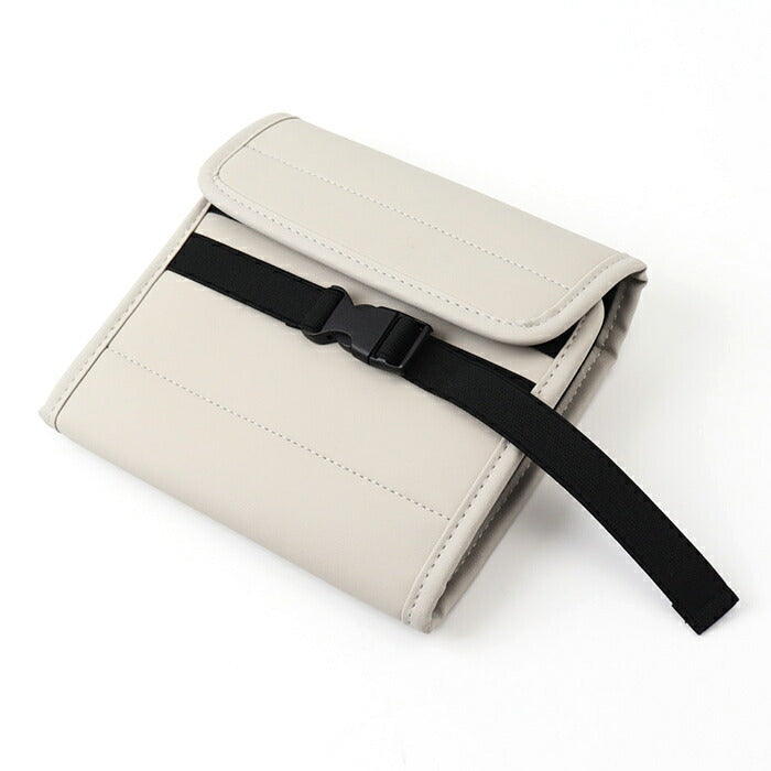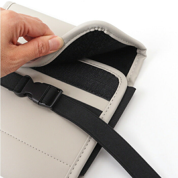 ・背面のゴム付きバックルベルトで、車内のサンバイザーやヘッドレストに簡単取付けが可能!