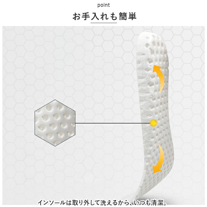 ・アッパー部分は通気性に優れたメッシュ仕様。涼しげなデザインで、汗をかいてもムレにくいのがポイント。