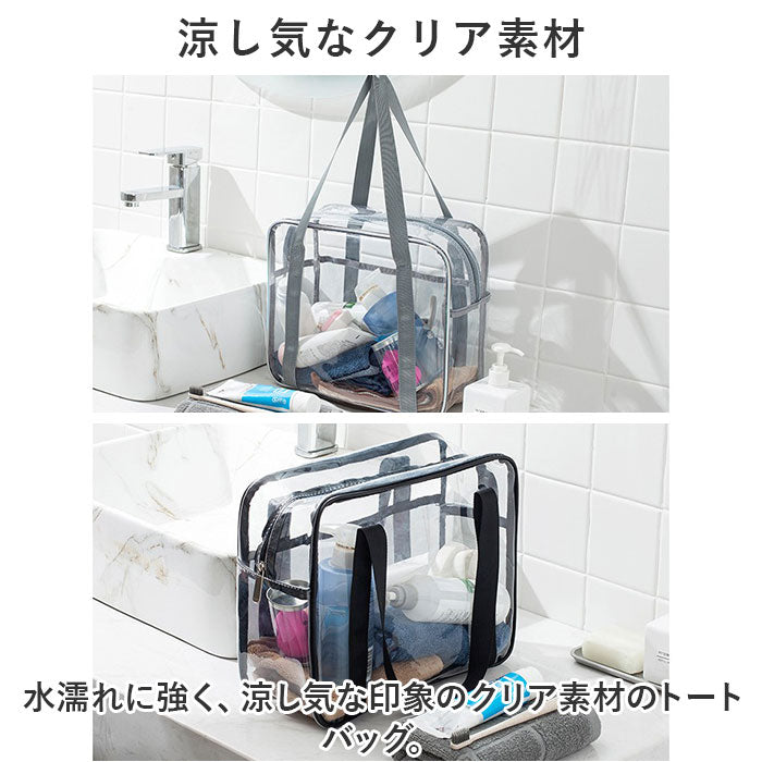 ・水濡れに強く、涼し気な印象のクリア素材のトートバッグ。