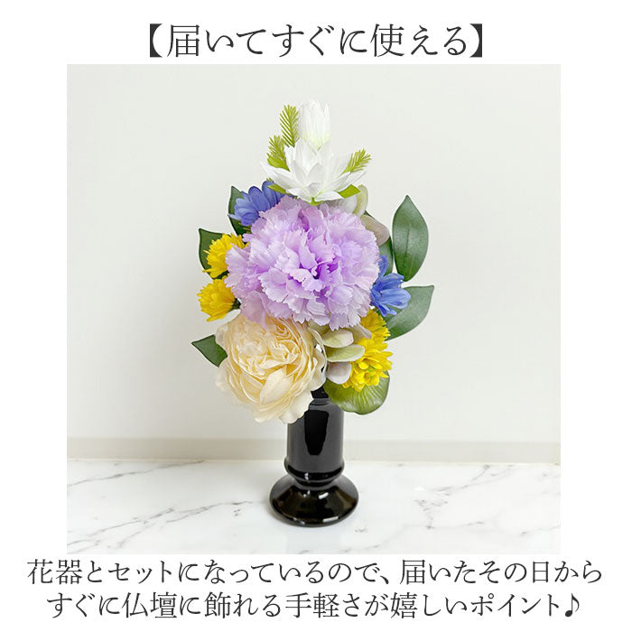 ・花器とセットになっているので、届いたその日からすぐに仏壇に飾れる手軽さが嬉しいポイント♪