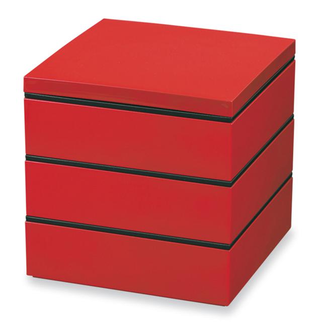 ・ポップなカラーリングがおしゃれな重箱型三段ランチボックス。たっぷり18cm角の三段ファミリータイプ。