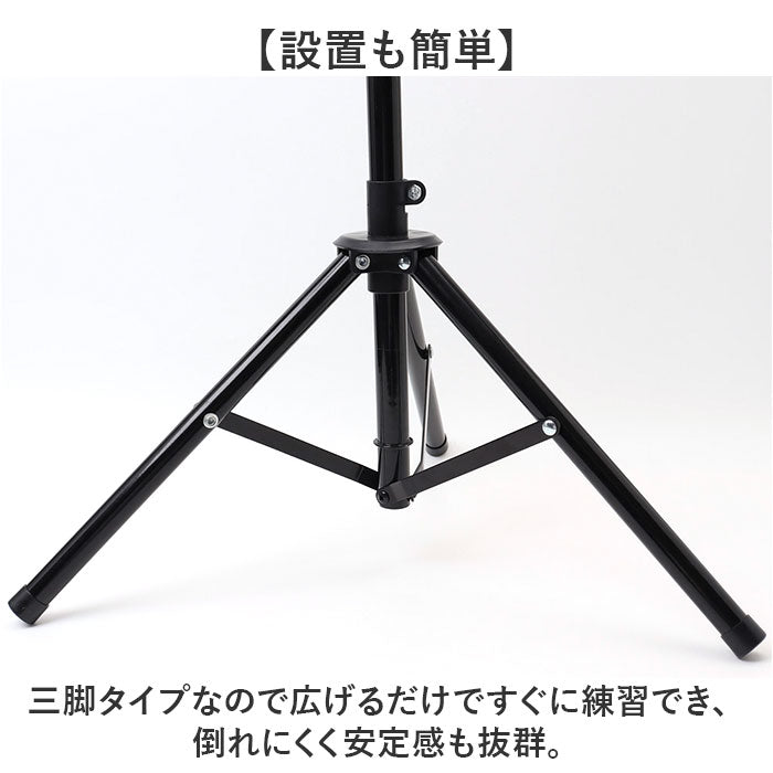 ・三脚タイプなので広げるだけですぐに練習でき、倒れにくく安定感も抜群。