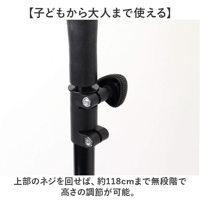 ・上部のネジを回せば、約118cmまで無段階で高さの調節が可能。
