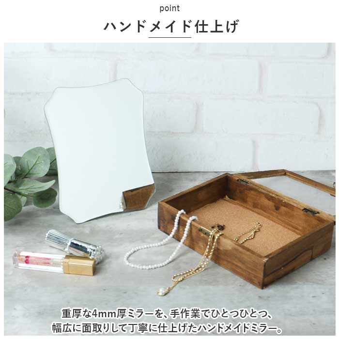 ・重厚な4mm厚ミラーを、手作業でひとつひとつ、幅広に面取りして丁寧に仕上げたハンドメイドミラー。