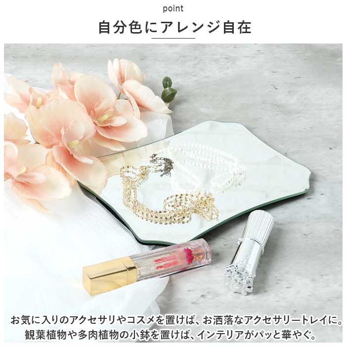 ・お気に入りのアクセサリやコスメを置けば、お洒落なアクセサリートレイに。観葉植物や多肉植物の小鉢を置けば、インテリアがパッと華やぐ。
