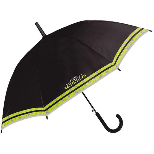 ・ブラックの傘生地をカモフラボーダーや「Dimension Thunder」のロゴが彩るスタイリッシュな仕上がりで、お洒落に余念のないボーイズに大人気。