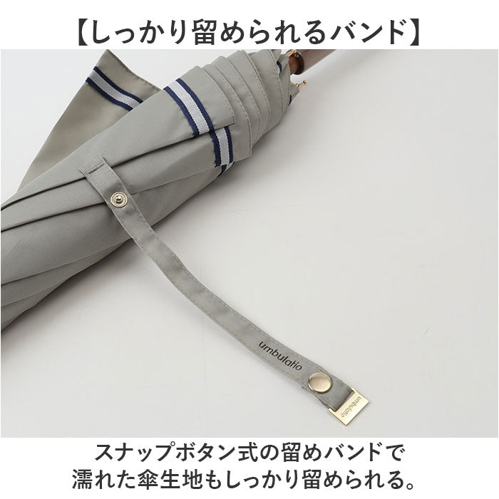 ・スナップボタン式の留めバンドで濡れた傘生地もしっかり留められる。