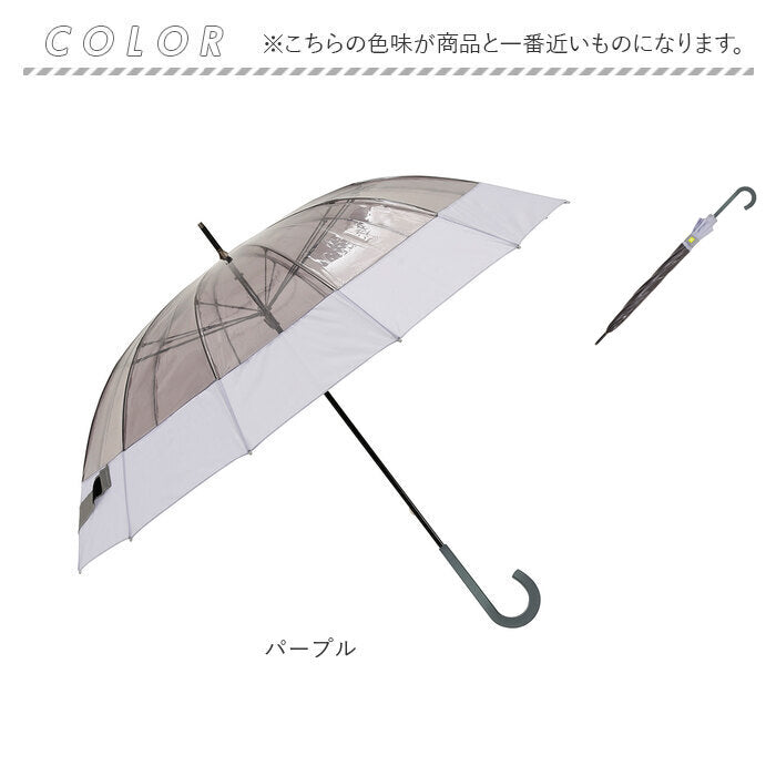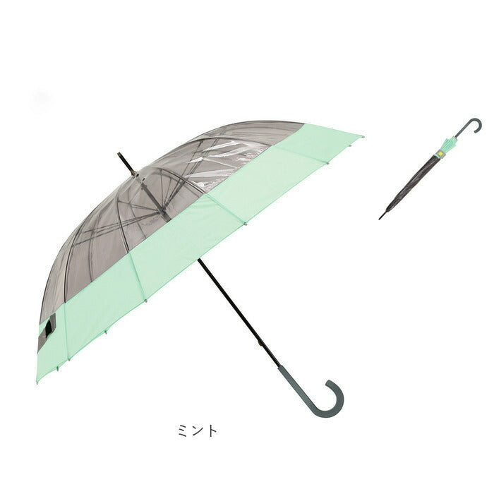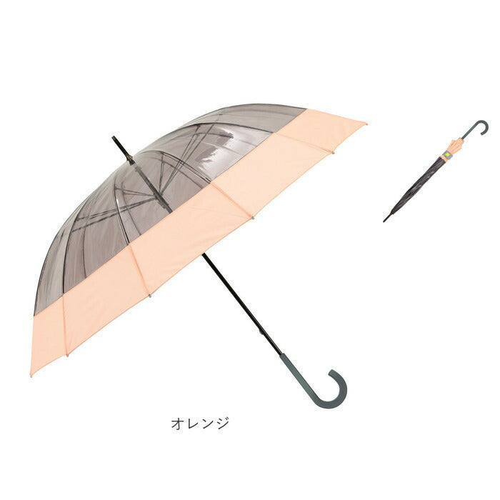 ・透明感のあるビニール素材をくすみカラーの生地で縁取ったユニークな切り継ぎデザイン。コンビニのビニール傘では満足できないお洒落女子に最適!