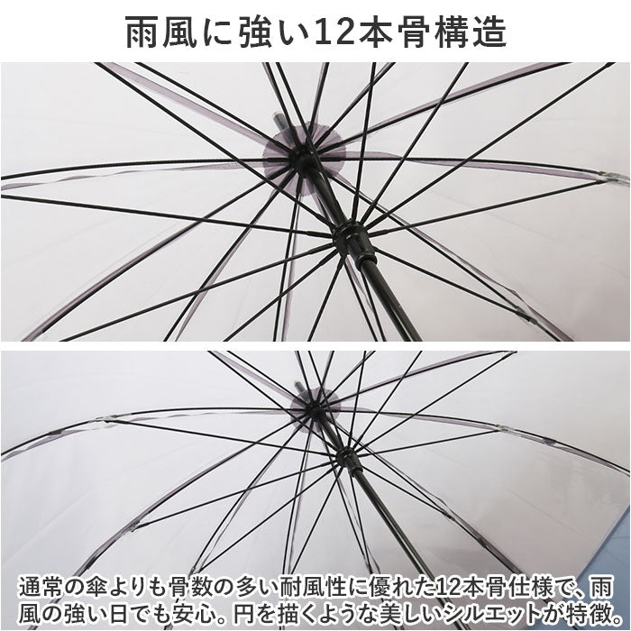 長傘 12本骨 クリア 60cm 通販 雨傘 アンブレラ ビニール傘 軽量 軽い 透明 ポリエステル ゼロアンド -0& レディース メンズ おしゃれ オシャレ 可愛い 男女兼用 かわいい ギフト 贈り物