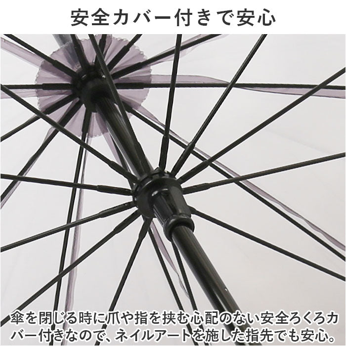 ・傘を閉じる時に爪や指を挟む心配のない安全ろくろカバー付きなので、ネイルアートを施した指先でも安心。