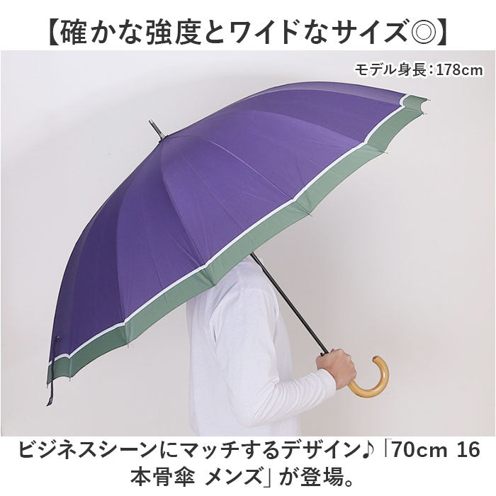 長傘 70cm 16本骨 メンズ 通販 雨傘 傘 かさ カサ アンブレラ メンズ傘 丈夫 風に強い 骨が多い 大きい 大きめ カジュアル かっこいい 紳士 男性 ギフト 贈り物 雨の日 雨 通勤 通学