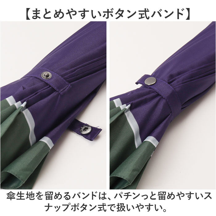 ・傘生地を留めるバンドは、パチンっと留めやすいスナップボタン式で扱いやすい。