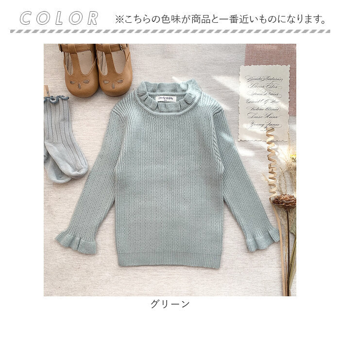 長袖 ニット 女の子 トップス 通販 重ね着 レイヤード インナー 子供服 子ども服 こども服 フレア フリル こども 子ども 子供 キッズ かわいい 可愛い 春 秋 冬 コットン 綿 子供用
