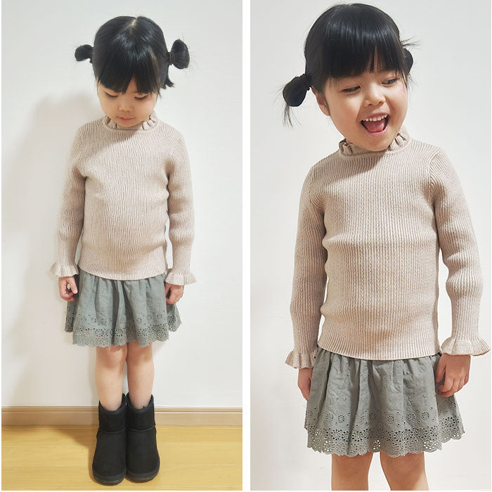 ・シンプル×フリルがおしゃれ☆毎日着られるもっちりニット。キッズニットトップスが登場。