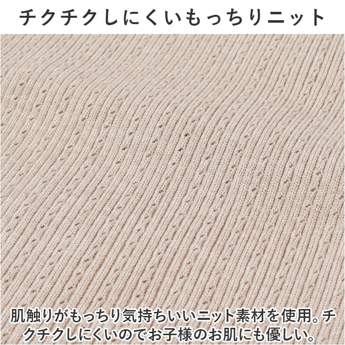 ・肌触りがもっちり気持ちいいニット素材を使用。チクチクしにくいのでお子様のお肌にも優しい。