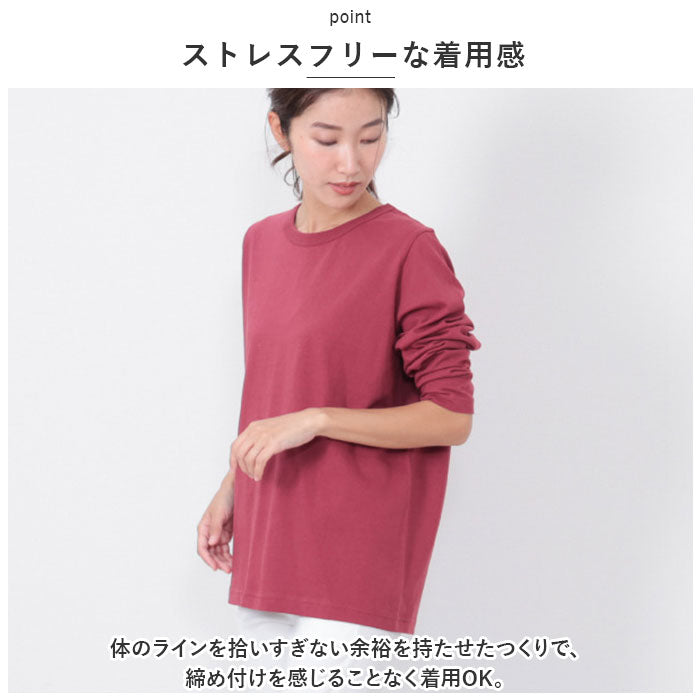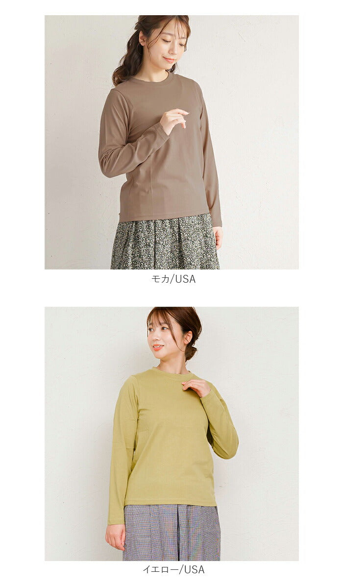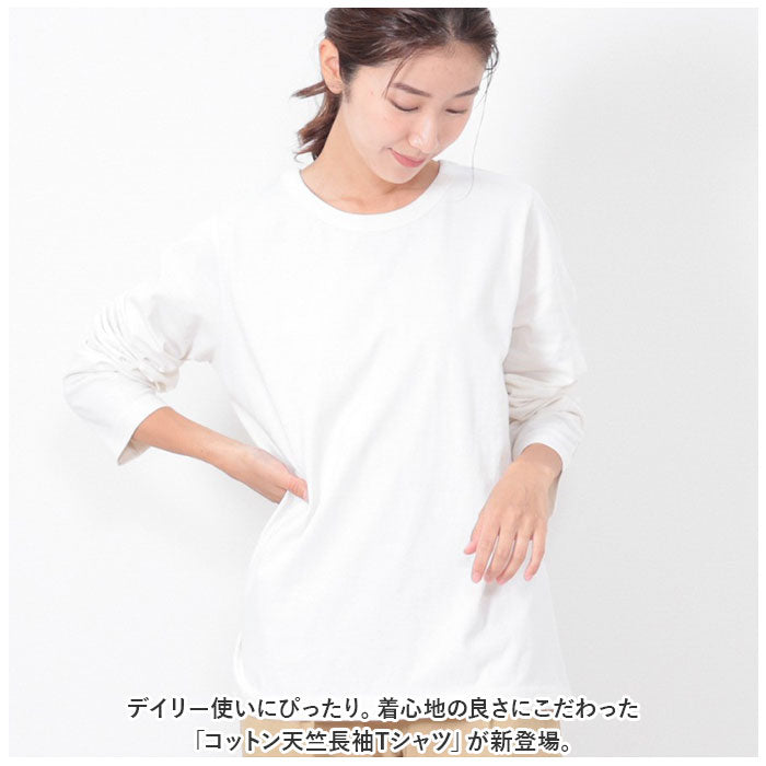 長袖 Tシャツ レディース 通販 カットソー ロンT 長袖Tシャツ ロングTシャツ 綿 コットン 天竺 生地 シンプル 無地 おしゃれ 大人かわいい 可愛い 丸首 ラウンドネック トップス インナー
