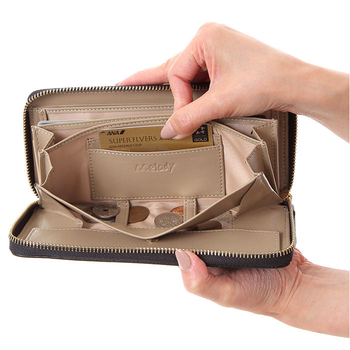 ・内側:BOX型小銭入れ×1、じゃばら式カード入れ×10、カードポケット×8、フリーポケット×6