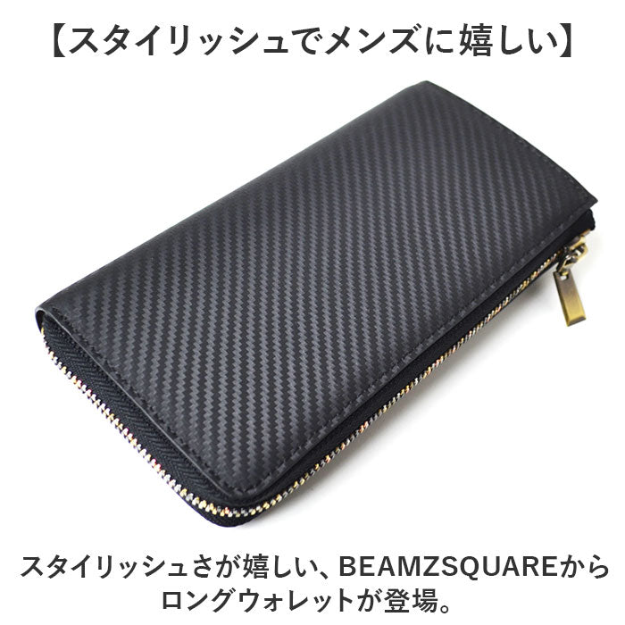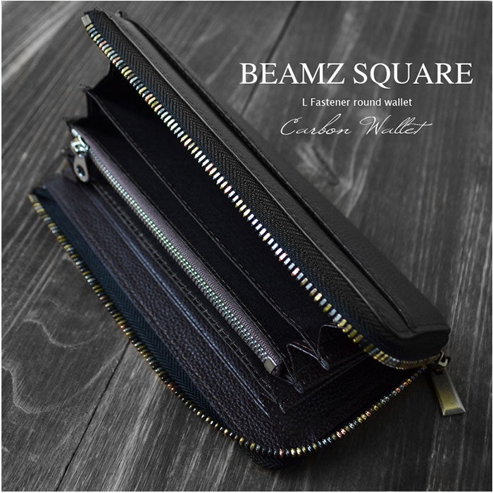 長財布 メンズ ブランド 通販 長 財布 ロングウォレット さいふ サイフ ウォレット 革 レザー L字ファスナー 軽量 軽い 丈夫 おしゃれ 男性 カーボンレザー BEAMZ SQUARE