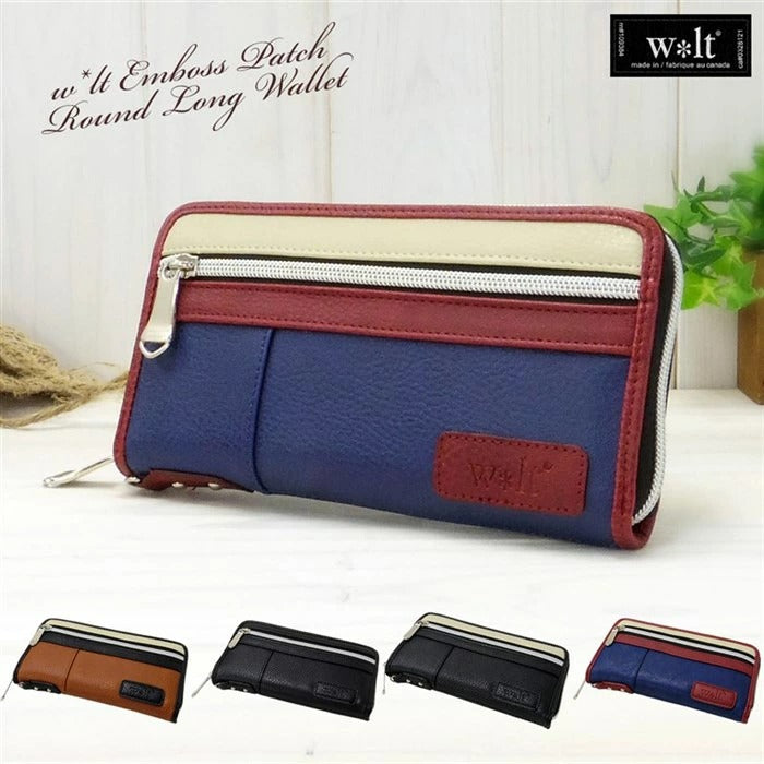 長財布 メンズ ラウンドファスナー 通販 財布 おしゃれ シンプル 合皮 切り替え 小銭入れあり レディース サイフ ラウンドジップ ロングウォレット ブランド w*lt walt ウォルト EMBOSS PATCH 280104a メンズ財布