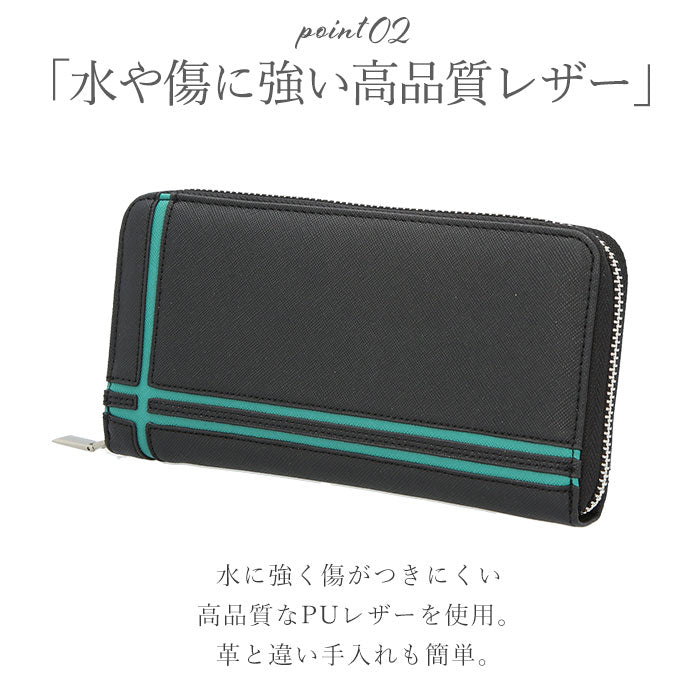 ・高級感のあるフェイクレザーを使用した人気のラウンドジップタイプ。
