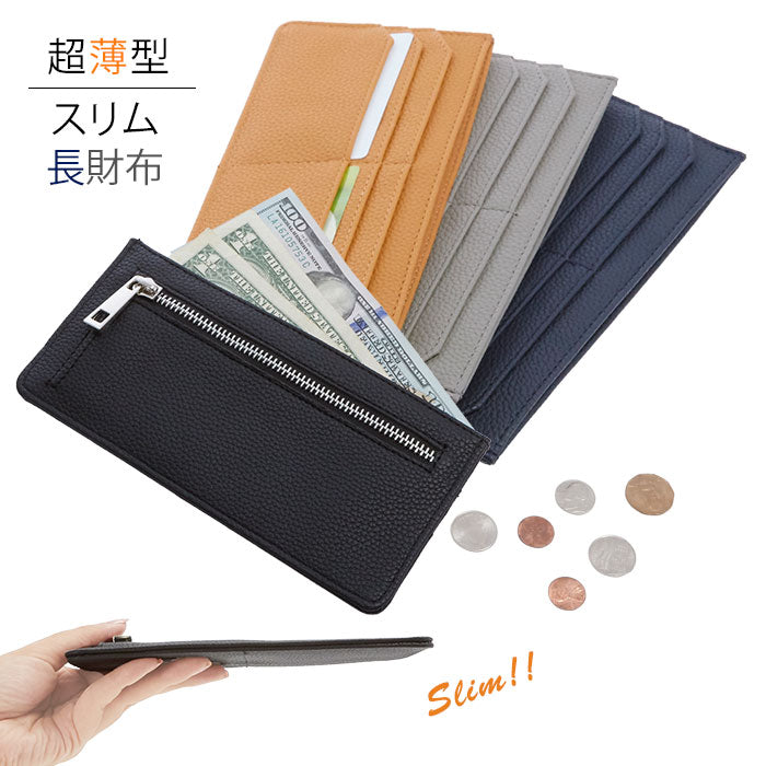 長財布 メンズ 薄い 通販 財布 男性 紳士 おしゃれ 30代 20代 40代 コンパクト 合皮 合成皮革 超薄型 薄型 スリム 父の日 敬老の日 プレゼント ギフト バレンタインデー 誕生日 札入れ カード入れ ブラック 黒 ネイビー 紺 小銭入れ ウォレット ロングウォレット