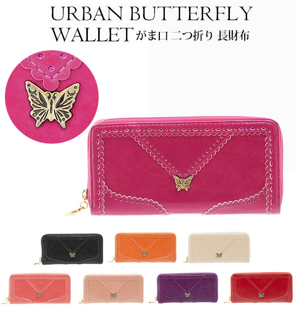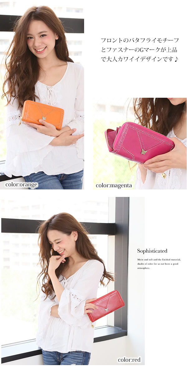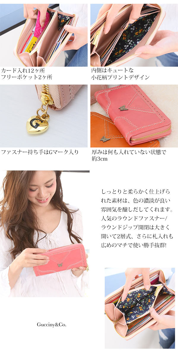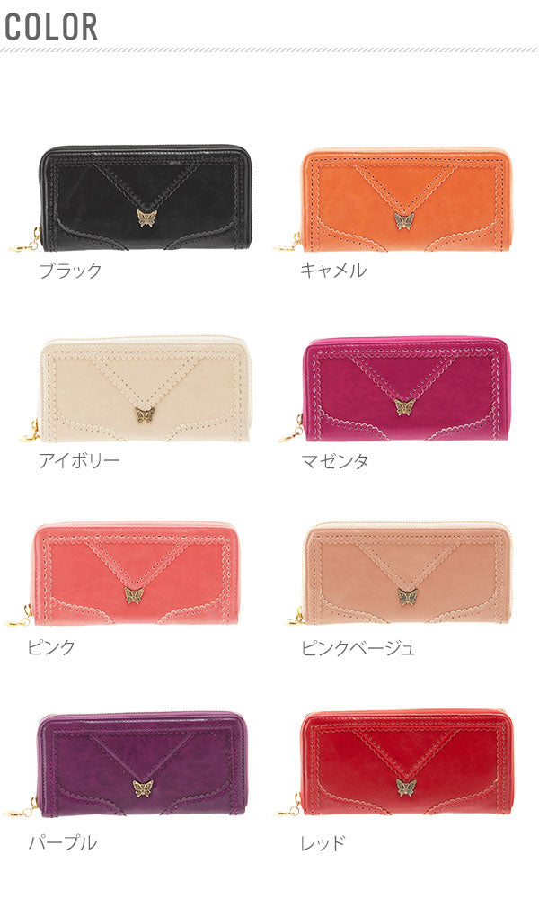 長財布 Gucciny&Co グッチーニ 通販 レディース 女性 かわいい おしゃれ ラウンドファスナー ロング ウォレット バタフライ ワンポイント ラウンドジップ 長サイフ 財布