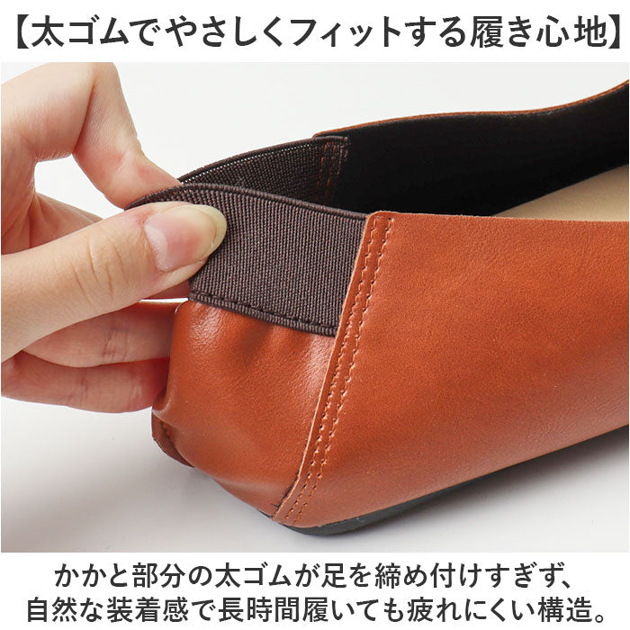 ・かかと部分の太ゴムが足を締め付けすぎず、自然な装着感で長時間履いても疲れにくい構造