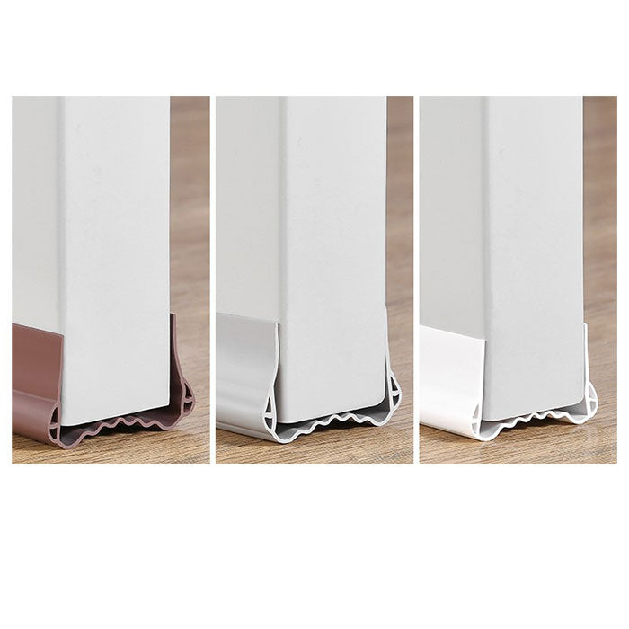 ・程よく伸縮性のあるPVC素材が、厚み約3.5cm~約5.0cmのドアに自在にフィット(※1)。ドア下端に当たる部分を波状に加工することで密閉性も確保。(※ドア下のすき間0.3cm~1.5cmに対応。)