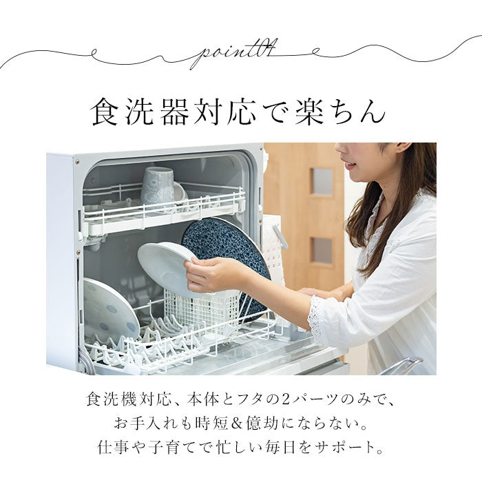 ・食洗機の使用ができるから、忙しい毎日の味方◎本体とフタの2パーツのみ、内面は汚れが落ちやすいふっ素樹脂加工済み。