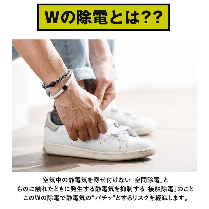 ・ユニセックスに使えるカジュアルデザイン。静電気を除電し続けるリストバンド。