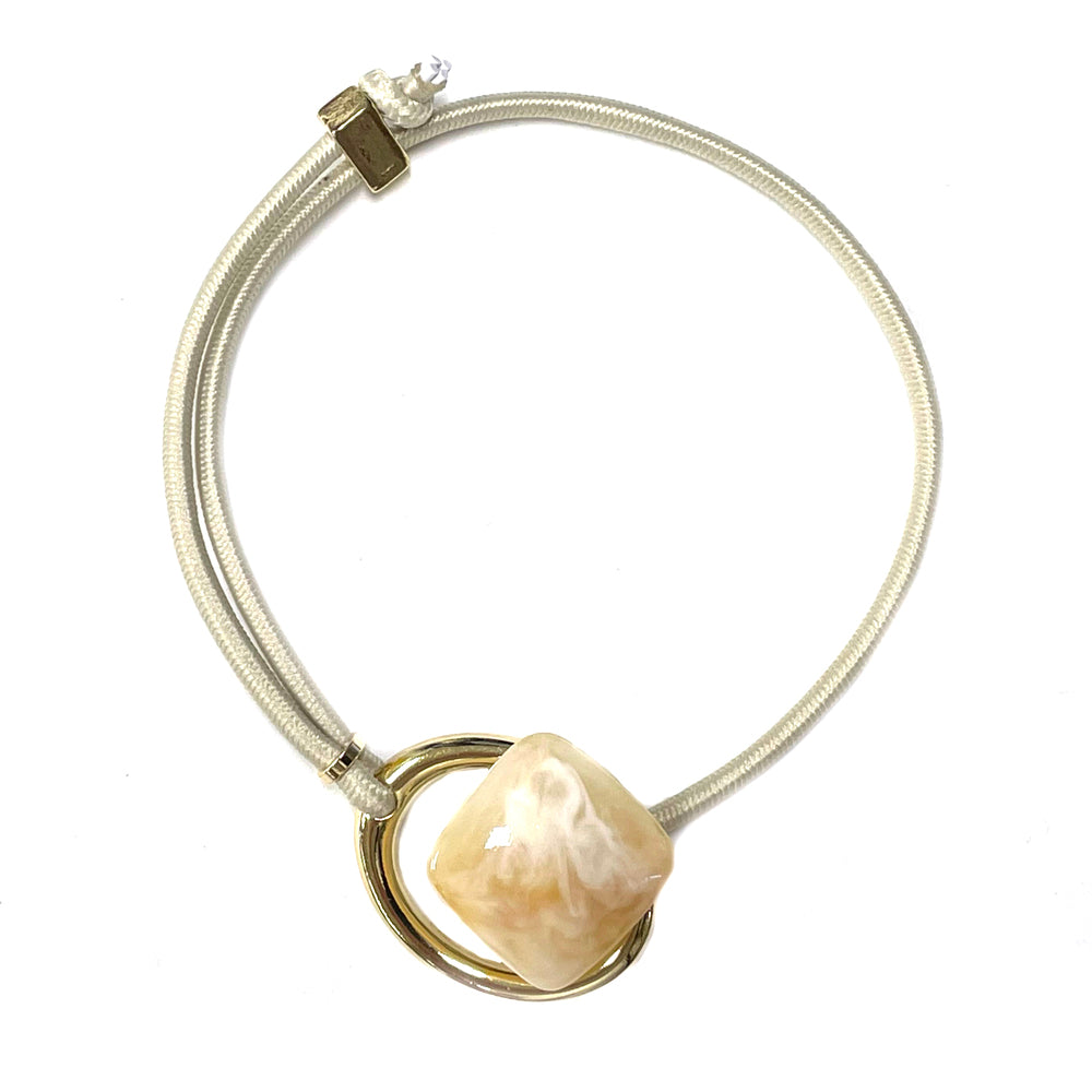 ・ゴールドの小さな金具部分のゴムを引っ張ることで、ゴムの輪の大きさを簡単に微調整できるのが嬉しいポイント!