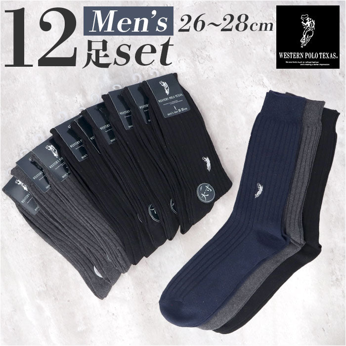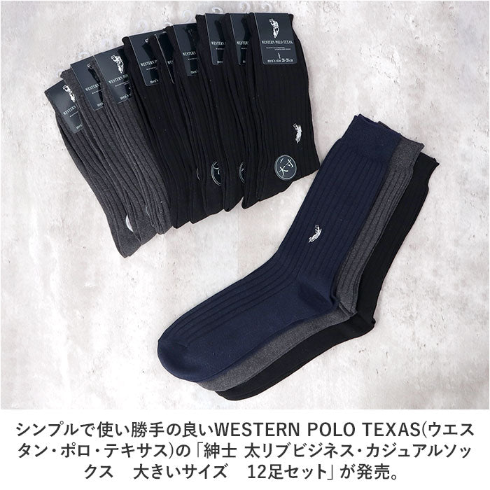 ・シンプルで使い勝手の良いWESTERN POLO TEXAS(ウエスタン・ポロ・テキサス)の「紳士 太リブビジネス・カジュアルソックス 大きいサイズ 12足セット」が発売。
