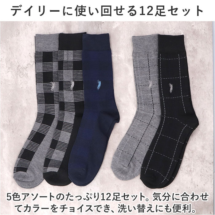 靴下 メンズ 12足組 通販 ソックス 靴した カジュアルソックス くつ下 紳士靴下 クルーソックス 柄 紳士用 メンズソックス セット おしゃれ 25~27cm くつした オシャレ シンプル
