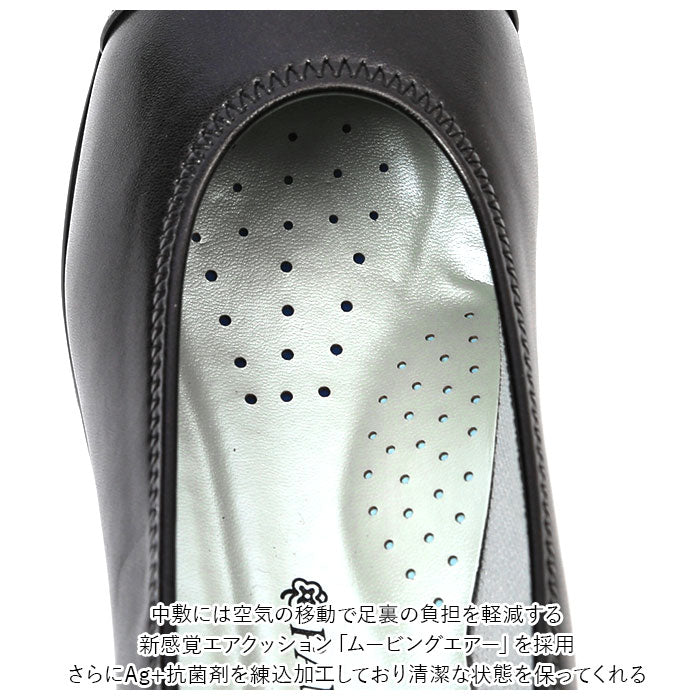 ・中敷には空気の移動で足裏の負担を軽減する新感覚エアクッション、「ムービングエアー」を採用。さらにAg+抗菌剤を練込加工しており清潔な状態を保ってくれる。