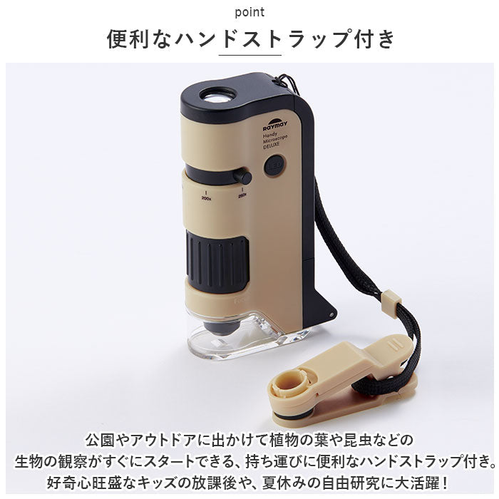 ・公園やアウトドアに出かけて植物の葉や昆虫などの生物の観察がすぐにスタートできる、持ち運びに便利なハンドストラップ付き。好奇心旺盛なキッズの放課後や、夏休みの自由研究に大活躍!