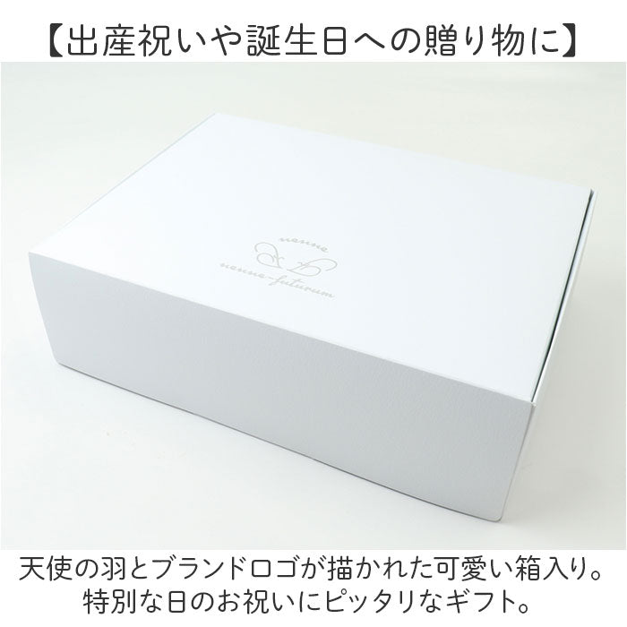 ・天使の羽とブランドロゴが描かれた可愛い箱入り。特別な日のお祝いにピッタリなギフト。