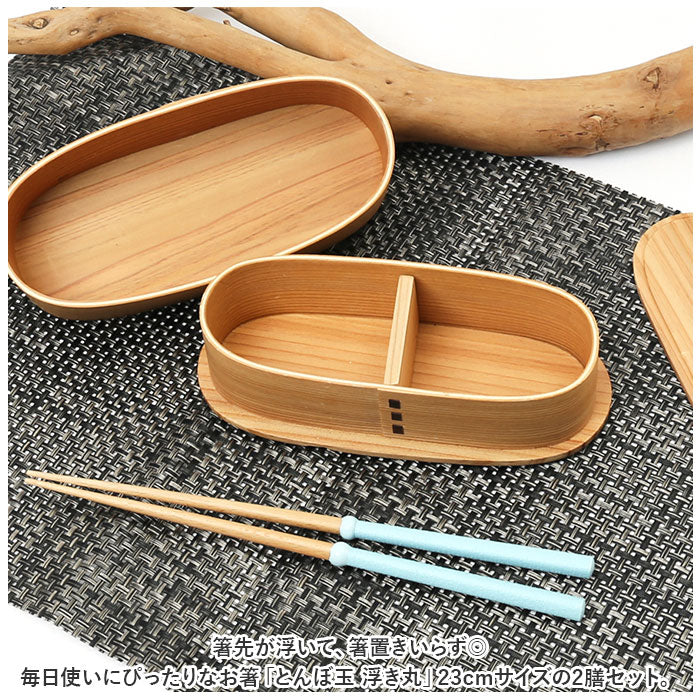・箸先が浮いて、箸置きいらず◎毎日使いにぴったりなお箸「とんぼ玉 浮き丸」23cmサイズの2膳セット。