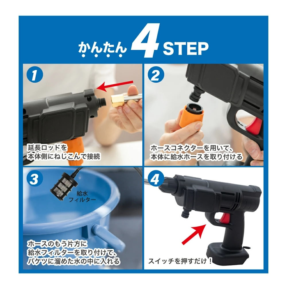 高圧洗浄機 コードレス 充電式 楽天 高圧洗浄器 高圧洗浄 ショート ガン 高圧 ショートガン マジカルウォッシュ 水道不要 散水機 換気扇 洗車 車掃除 床掃除 玄関掃除 網戸掃除 キャンプ