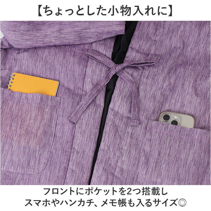 ・サッと羽織って使える前開きタイプ。前のリボンを結べば防寒性UP。