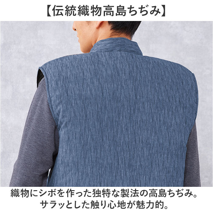 高島ちぢみ ベスト 中綿 袖なし 通販 羽織 羽織り 部屋着 ルームウェア ルームウエア そでなし 袖無し あったか あたたかい 暖かい 室内着 和風 中綿入り ぽかぽか そで無し メンズ