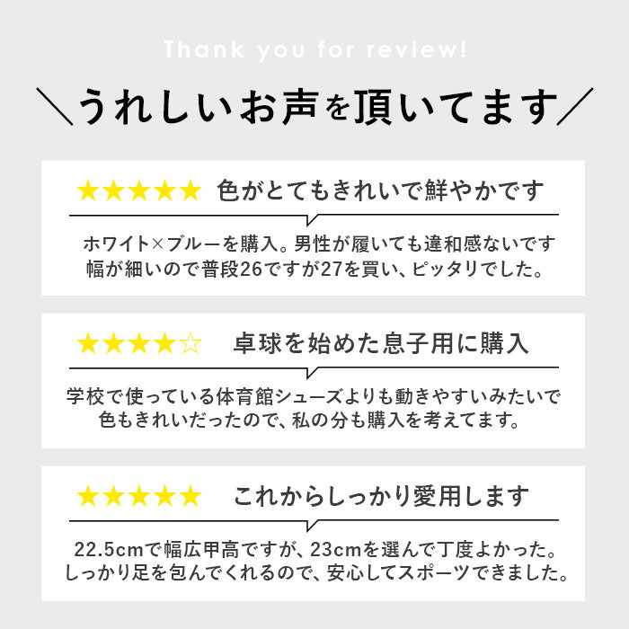 ・テニスやバレーボール、バドミントン、卓球などいろいろなコートで活躍するスポーツシューズ。ランニングやジムでの使用も◎