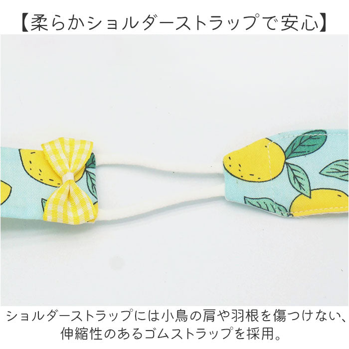 ・ショルダーストラップには小鳥の肩や羽根を傷つけない、伸縮性のあるゴムストラップを採用。