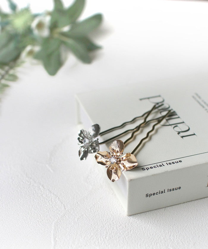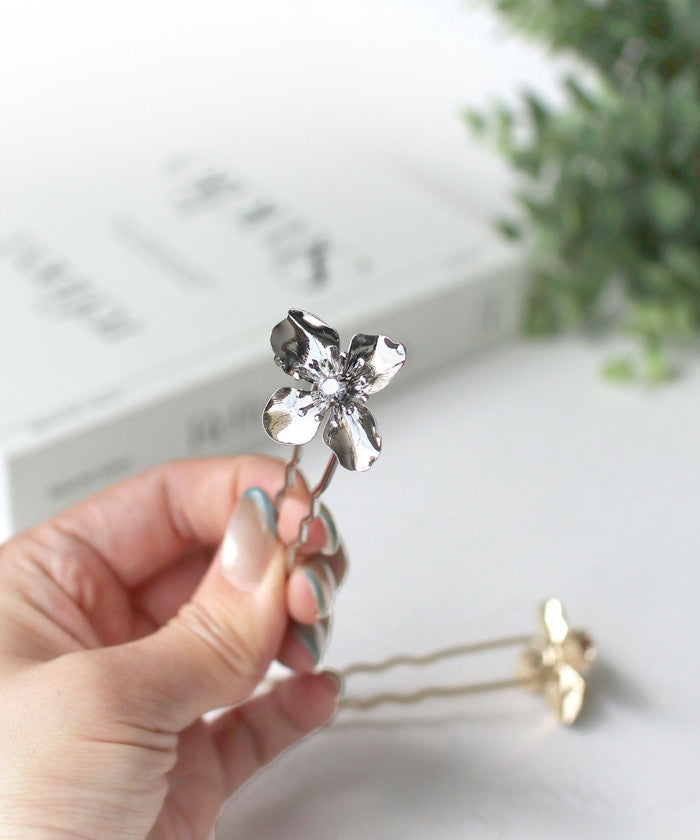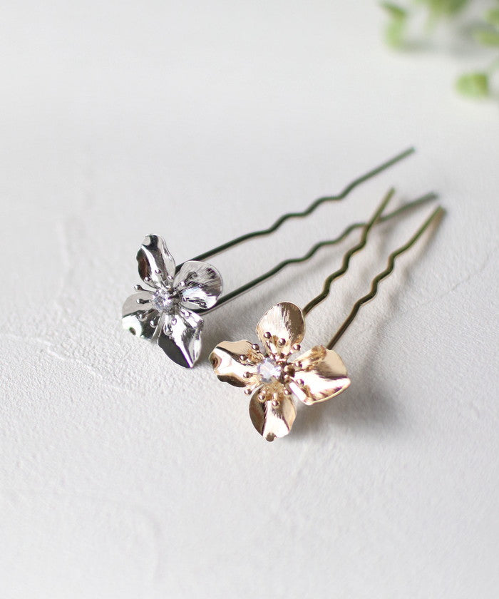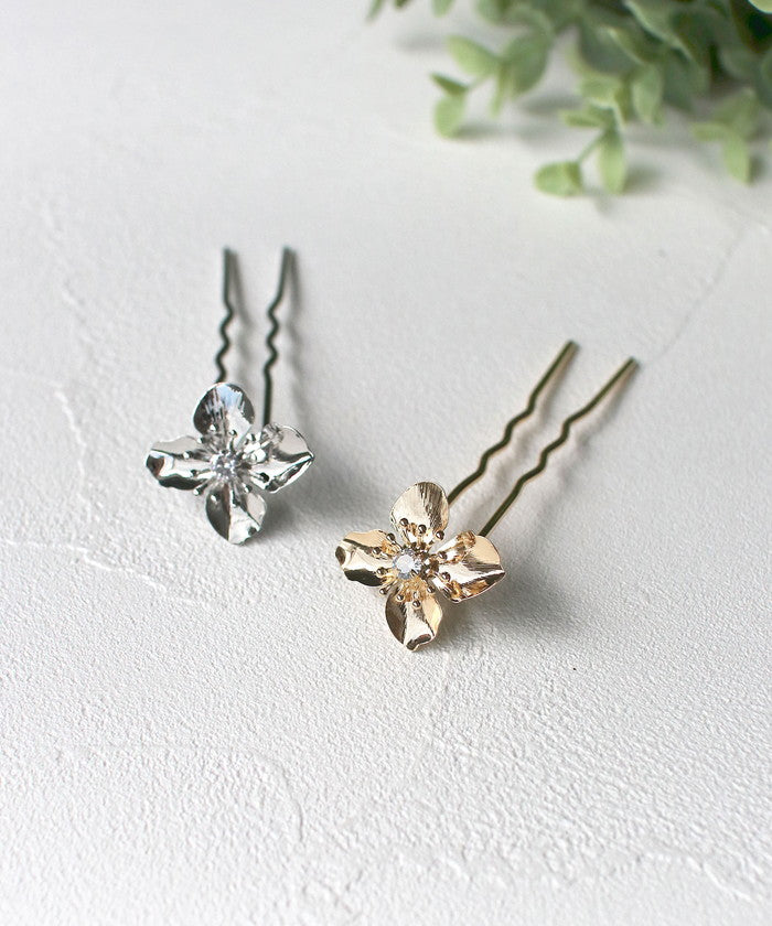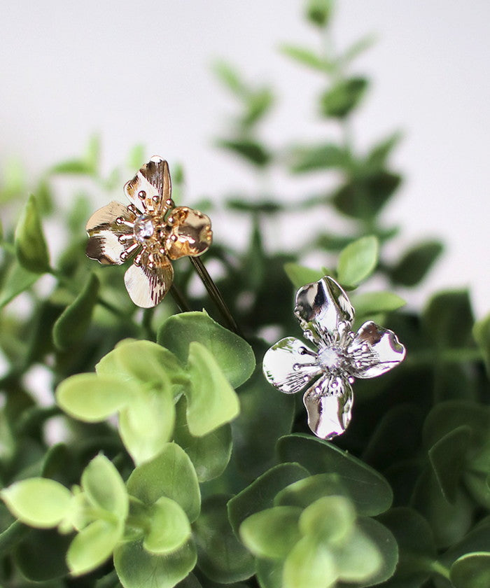 ・ゴールドとシルバーの2色から選べて、どちらもシンプルでありながら存在感抜群!まるで本物の花びらのように、ふわっと広がるデザインが素敵です。