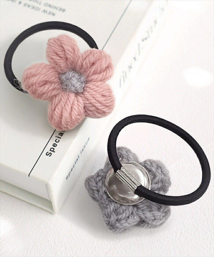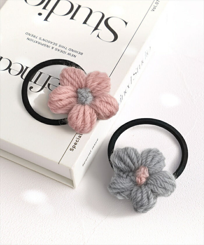 ・毛糸でふんわり丁寧に編み上げたかわいいお花の「ブルームニットヘアゴム」。