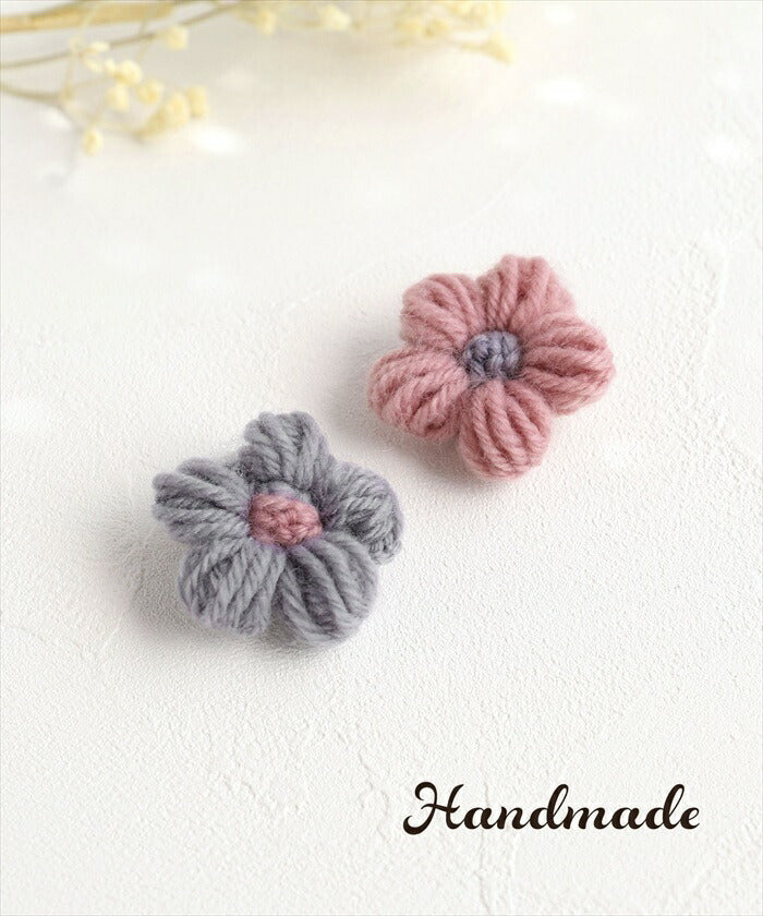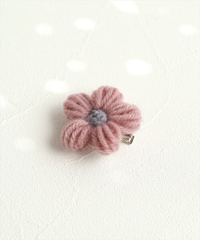 ・毛糸でふんわり丁寧に編み上げられた可愛いお花の「ブルーム ニット ヘアクリップ 2個セット」。