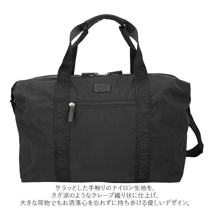 ・サラッとした手触りのナイロン生地を、さざ波のようなクレープ織り状に仕上げ、大きな荷物でもお洒落心を忘れずに持ち歩ける優しいデザイン。