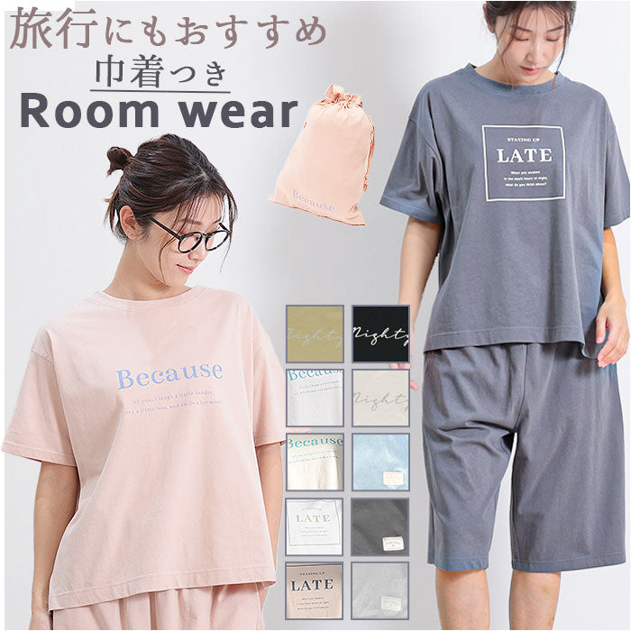 巾着付き半袖ロゴ上下セット ルームウエア